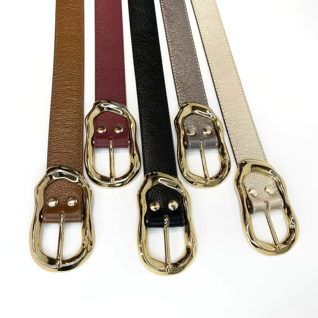 Cinto de couro natural,design casual,fecho de fivela metálica com design ondulado,possui 5 perfurações.