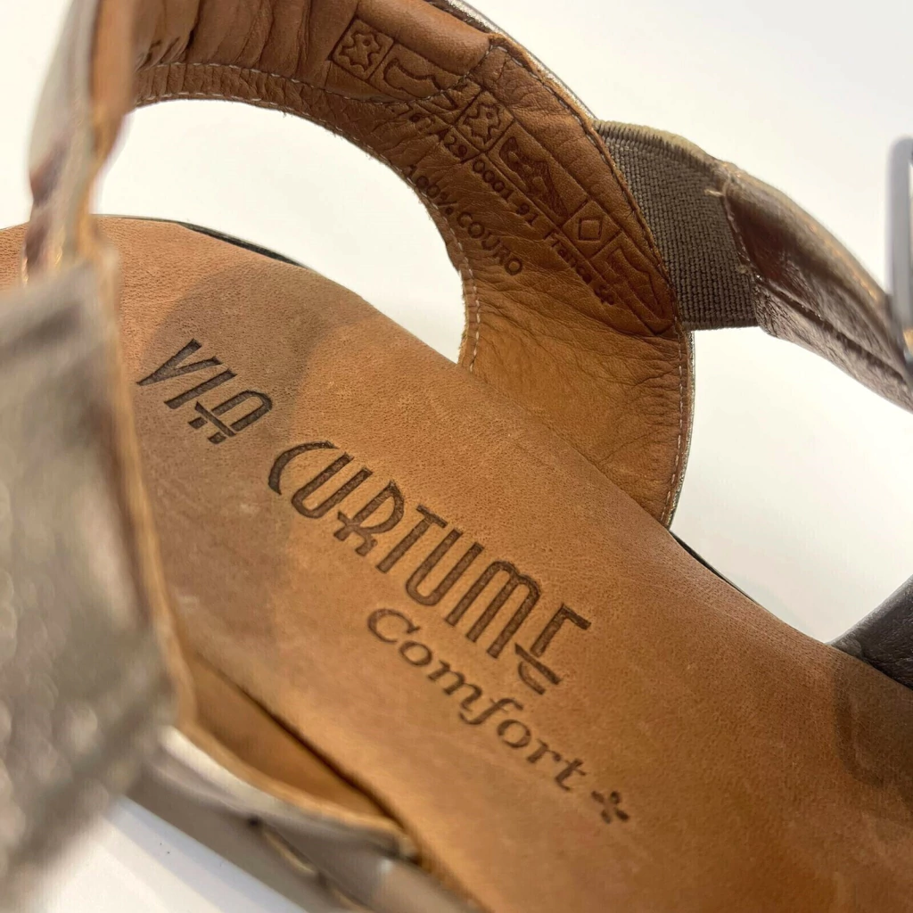 Confeccionada em couro, dedos livres,cabedal todo trançado,fecho em velcro na lateral externa,palmilha em couro macio,solado antiderrapante. Salto: 3 cm, Frente:1 cm